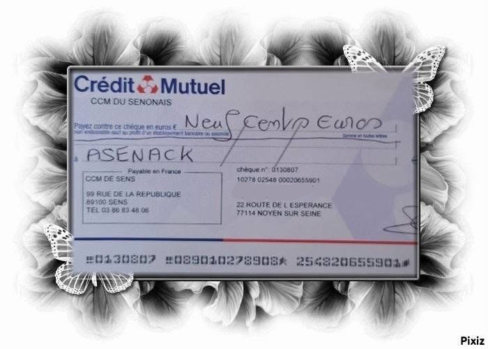 + Message d'Isabelle DAUSSIN (suite) Merci à tous pour vos généreux dons qui ont permis de donner un chèque à l'association ASENACK.