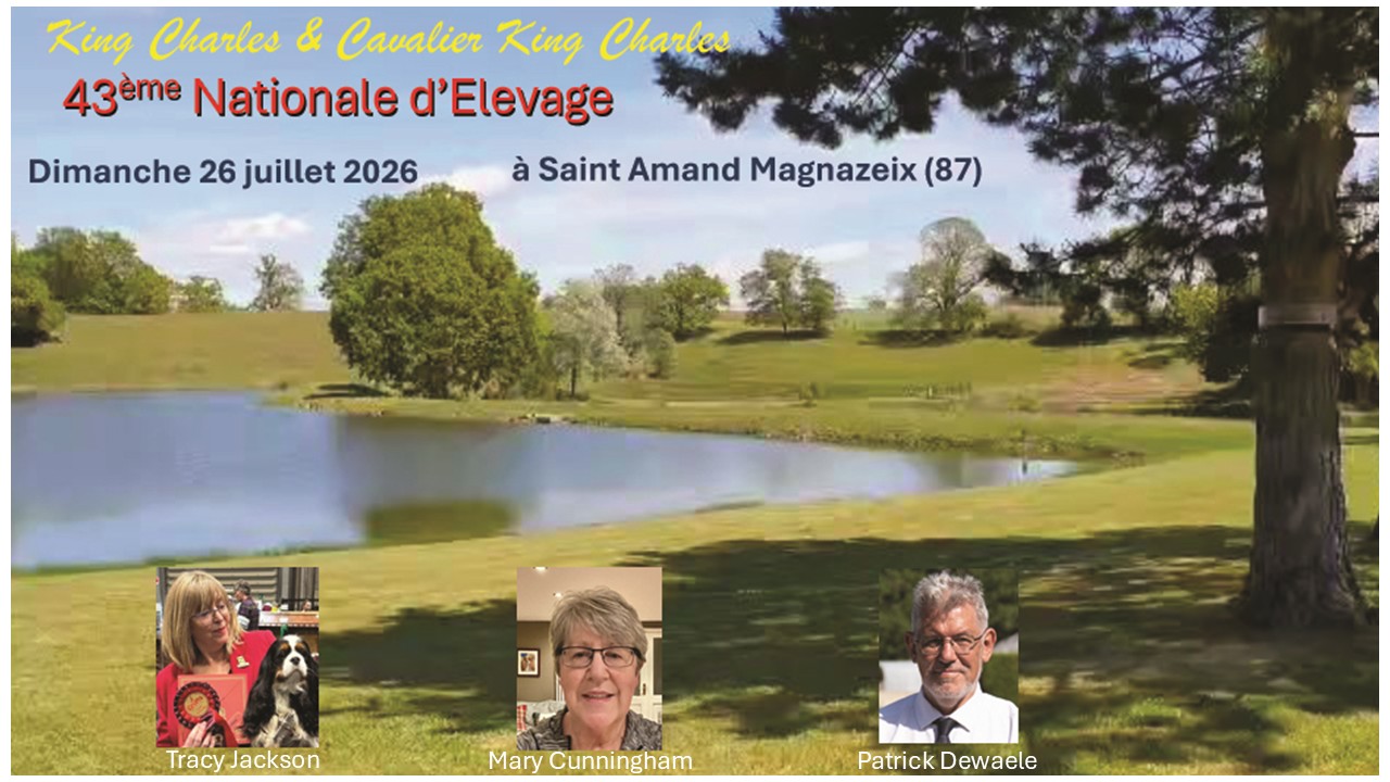 Nationale 2026La 43ème Nationale d'élevage des King Charles & des Cavalier King Charles, Club des Epagneuls Nains Anglais se déroulera le Dimanche 26 juillet 2026 à St Amand Magnazeix (87)